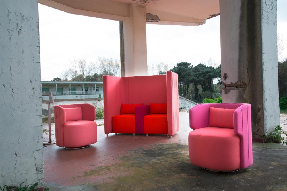 Maji fåtölj från Adrenalina. En fåtölj som kan väljas i flera olika klädselval och ingår i en serie där flera möbler finns.