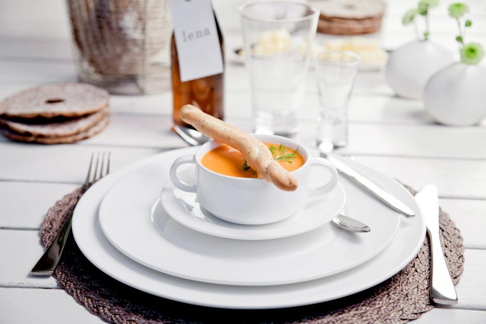 Lifestyle fat som har färgen Terracotta och passar olika soppskålar. Fat som ihop med soppskål passar bra i cafe, restaurang och i ett hem.