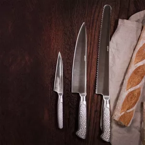 Knivset med 4 delar som är tillverkad av rostfritt stål i ett stycke och har en solid design med bekvämt handtag som passar bra i olika kök.