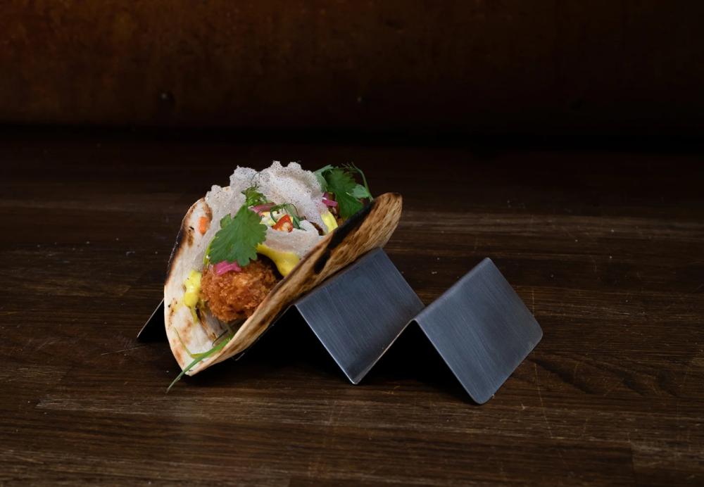Tacoställ med 4 eller 5 fack av rostfritt stål. Tacoställ och tacohållare som passar bra till tacos, steam buns, wraps och korv med bröd.