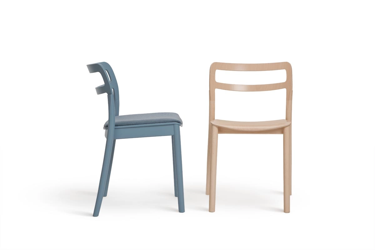 Plasa stol som är tillverkad av trä med träsits och har fina detaljer men även kan väljas i olika färger. Stolen ingår i serien Plasa där stolen även finns med klädd sits och är en serie där designen bygger på klassiska caféstolar av böjträ vilket man kan se på ryggstödets form.