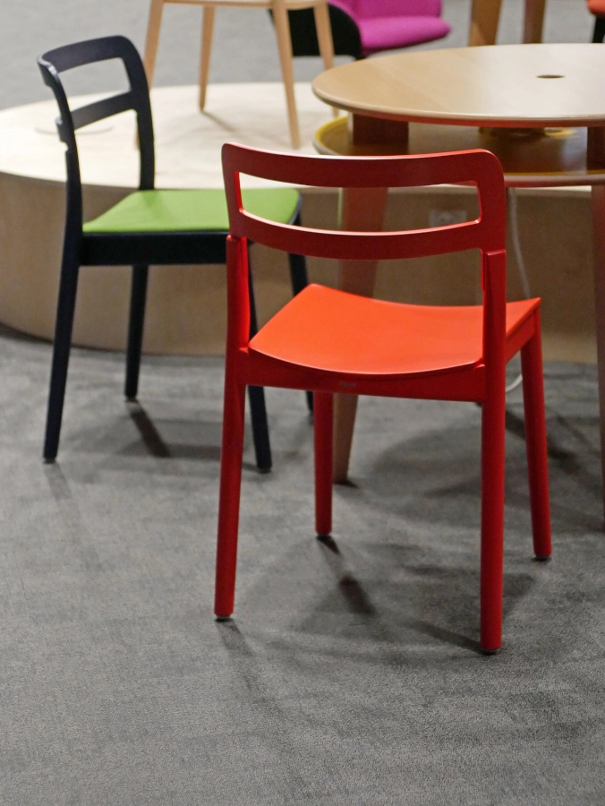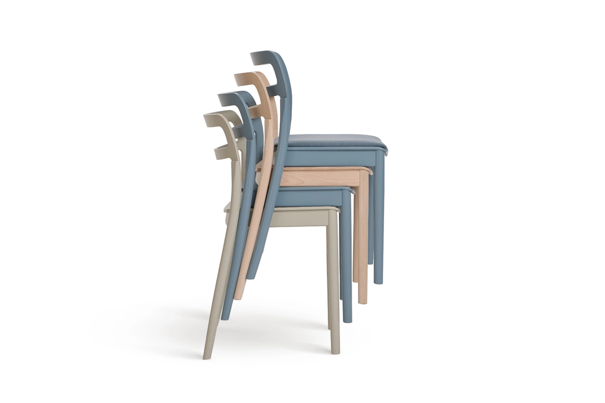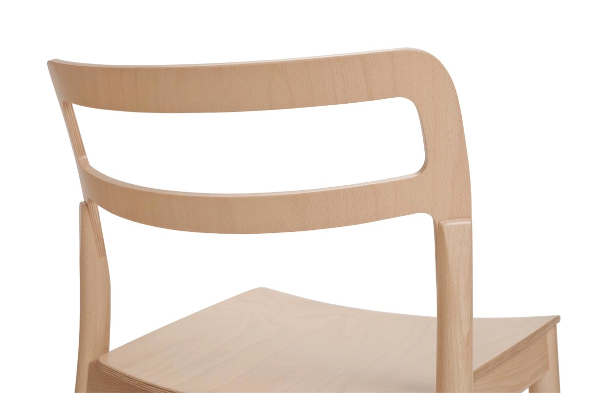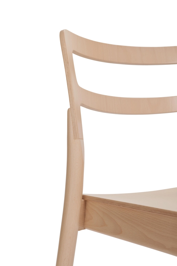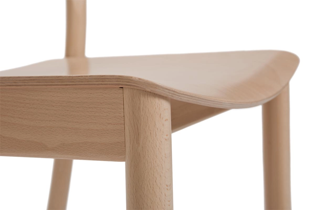 Med stolen arbetar man med träbearbetningteknik där målet är att hålla vikten så låg som möjligt utan hållbarhet eller stabilitet försämras vilket är viktigt för en stol i en offentlig miljö men även intressant i en privatmiljö. Tack vare den ergonomiskt formade plywooden för sits och rygg erbjuder stolen en bekväm sittkomfort, det går även att få stolen med klädd sits som ger ännu bättre sittkomfort.