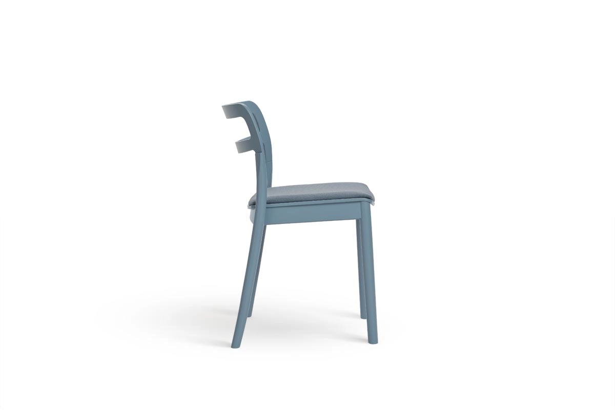 Plasa stol som är tillverkad av trä med klädd sits och har fina detaljer men även kan väljas i olika färger. Stolen ingår i serien Plasa där stolen även finns med träsits och är en serie där designen bygger på klassiska caféstolar av böjträ vilket man kan se på ryggstödets form.