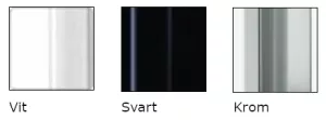 Färgerna vit och svart kan användas utomhus men krom bara inomhus.