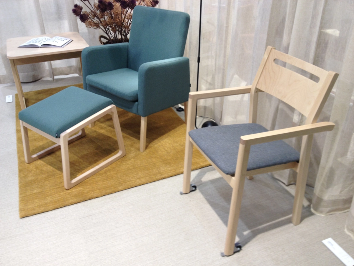 Karmstolen passar bra inom vård och omsorg då den som standard har urinväv. Väljer man klädd sits av tyg då är det en avtagbar basker för enkel rengöring men vid konstläder eller läder då spikas det fast. Det finns även glidhjul som gör det enklare att förflytta stolen.