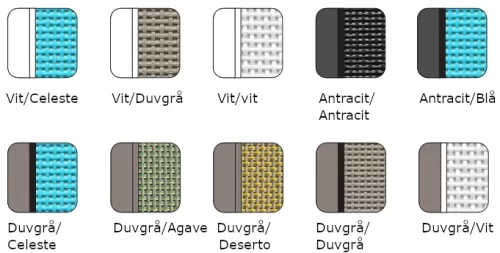 Stommen är vit, antracit eller duvgrå och olika färger finns på flätningen.