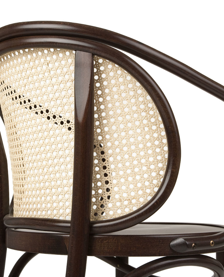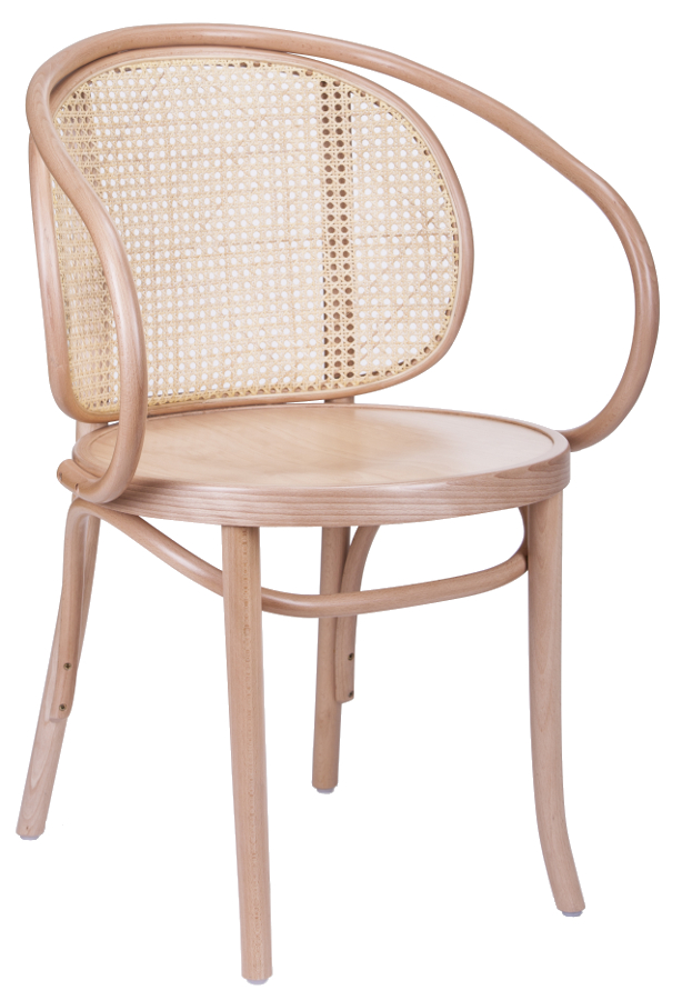 En karmstol med klassisk design som kan väljas i flera olika träfärger och ryggen är i rotting natur som gör att stolen passar bra i flera olika miljöer. Stol som passar bra som cafestol och restaurangstol i flera olika cafeinredningar och restauranginredningar men även som matstol i ett hem.