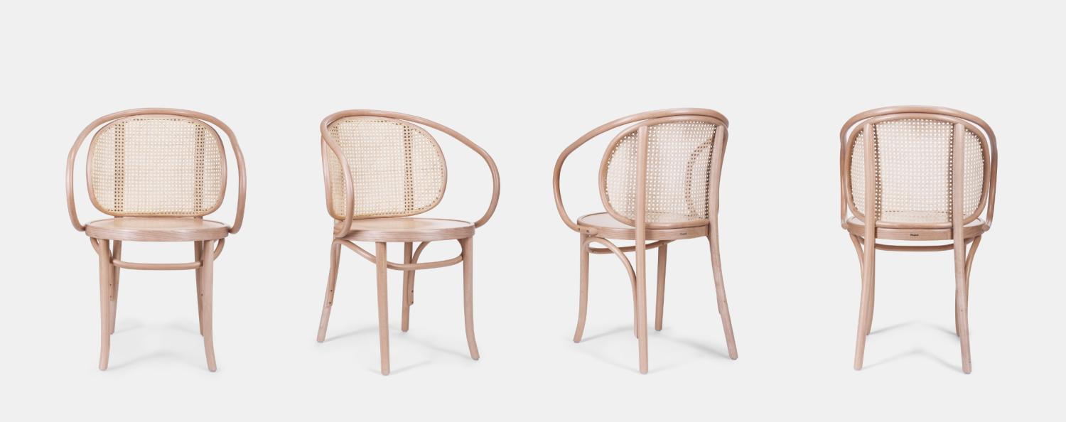 B1890 karmstol som är tillverkad av bok med träsits och där ryggen är av rotting. En karmstol som ingår i en serien 1890 som har välkända former och är tillverkad med böjträteknik. I serien 1890 finns karmstolar med klädd sits, rottingsits och träsits ihop med rygg som alltid är av rotting.