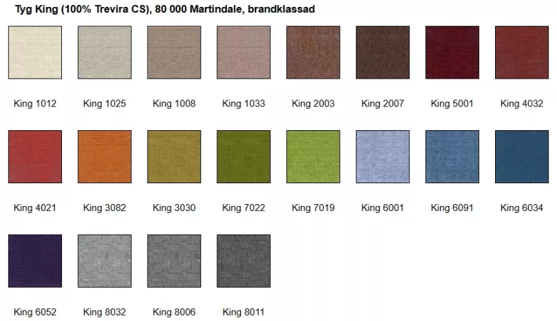 Nedan är standard. Det går även att välja fler klädselval som inte är standard.