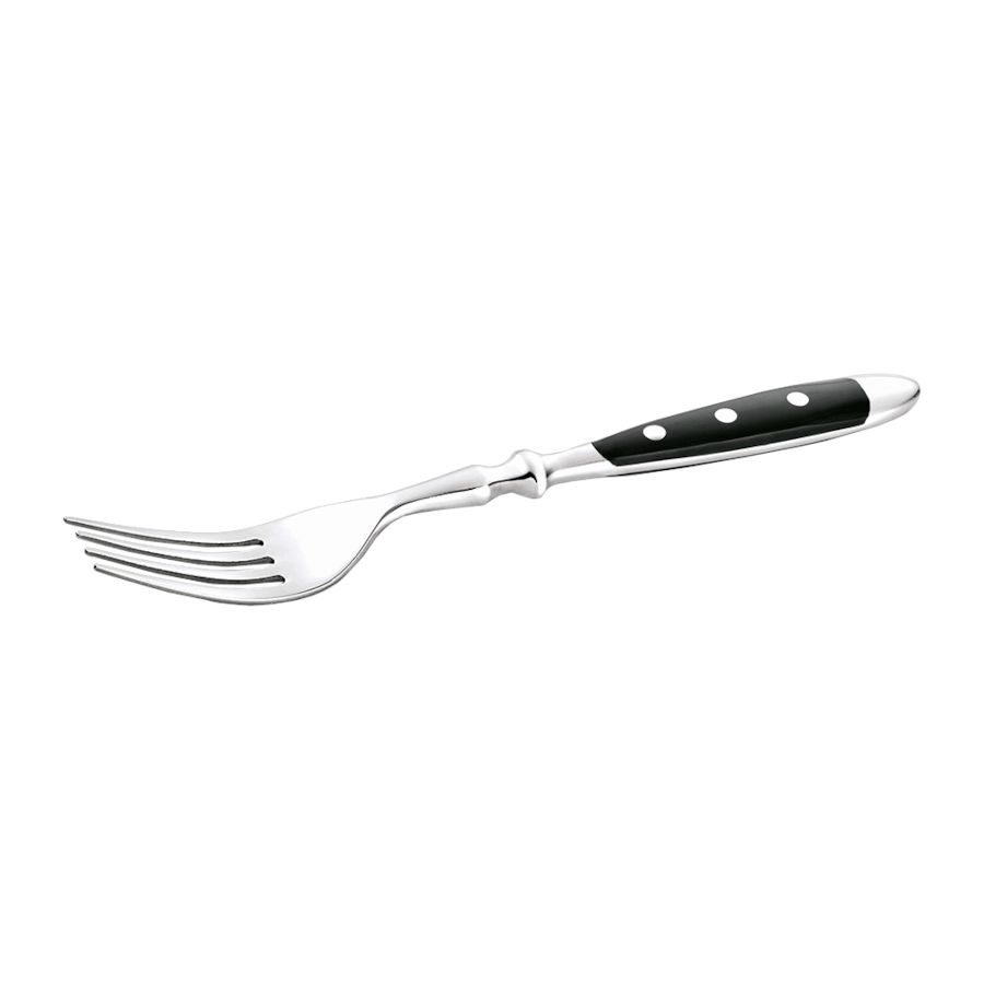 Bistro Classic bordsgaffel av rostfritt stål med handtag av plast som har dekorativa nitar och ingår i serien Bistro Classic. I serien Bistro Classic finns flera bestick som är robusta och har en klassisk men även rustik stil med speciell bistro charm. Besticken i serien har även en vikt och rundad form som gör serien extra behaglig att hålla.