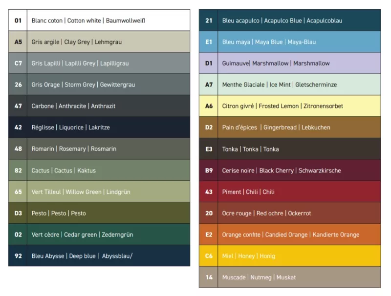 Populära färger är "02 Cedar green" och "42 liquorice".