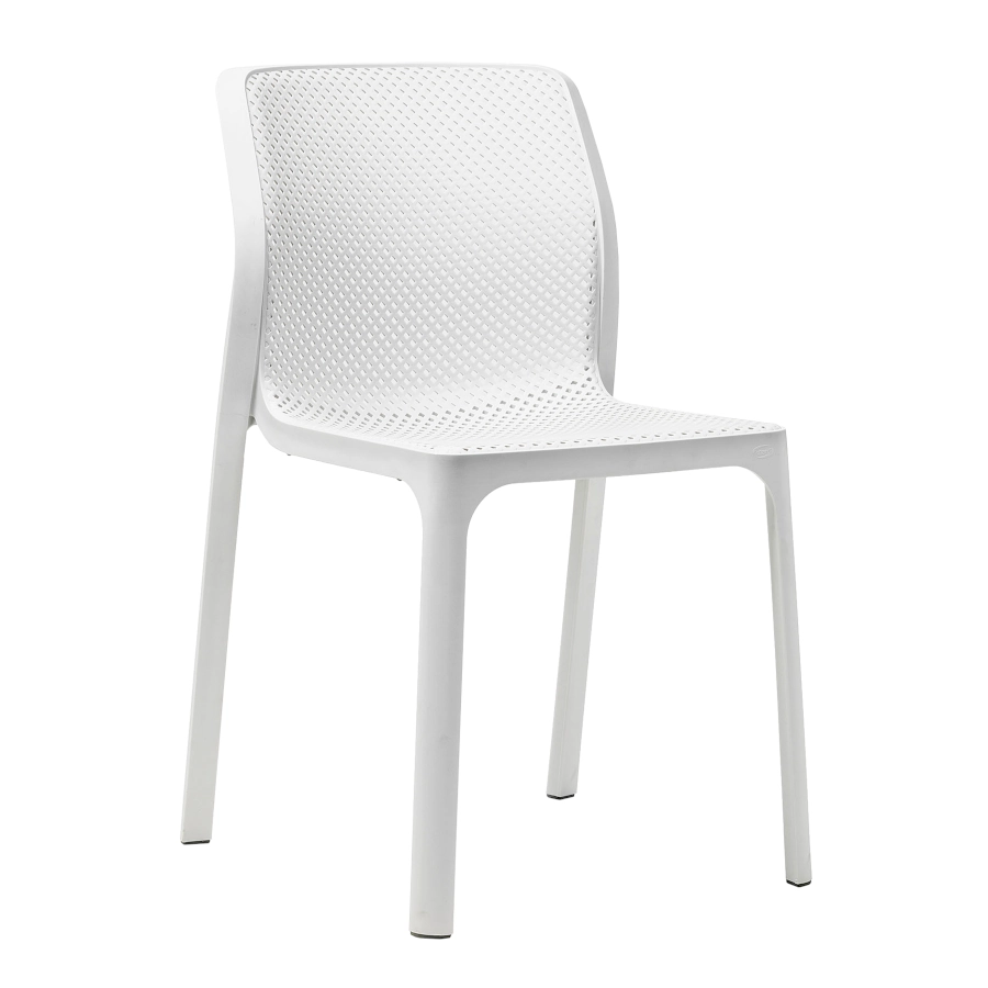 Bit stol från Nardi med perforerad sits och rygg som kan väljas i flera färger. Stolen är stapelbar och passar bra både inomhus som utomhus.