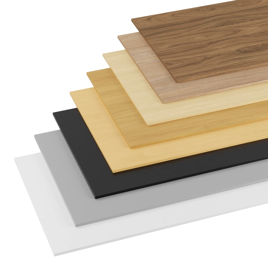 Rektangulär bordsskiva av laminat som finns i olika storlekar och färger. Prisvärd bordsskiva som är bra till konferensbord, mötesbord och skrivbord.