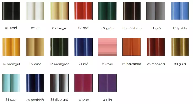 Färger som kan väljas för snörningar, mönsterbakgrund och dekor/prickar.
