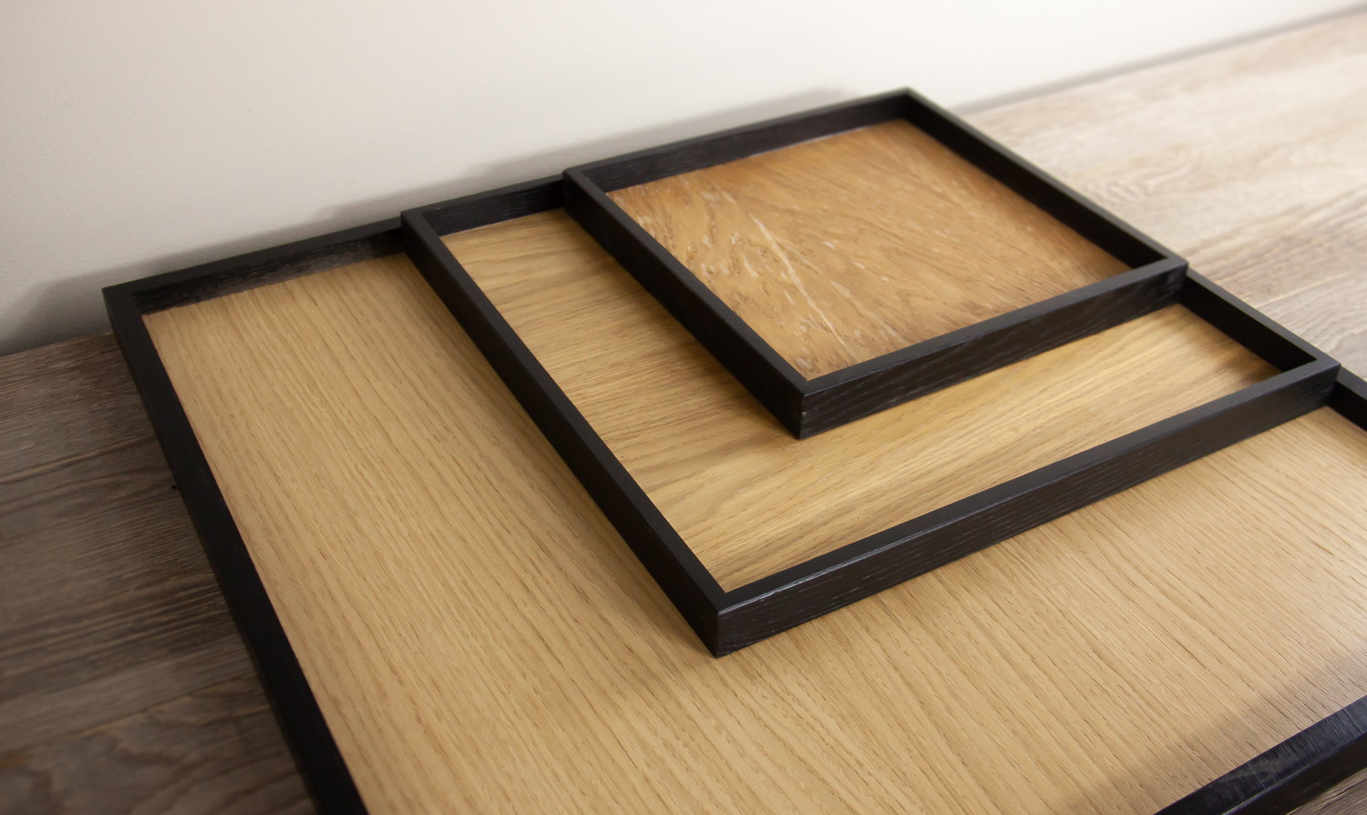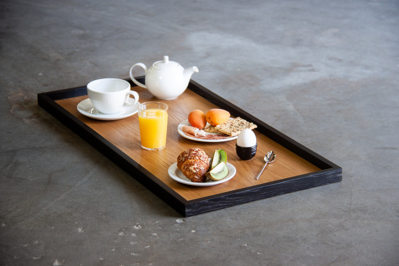 Bricka från Select Concept som är 60x40 cm av ek som är linoljad med svart sarg. Serveringsbricka och frukostbricka som finns i olika storlekar.