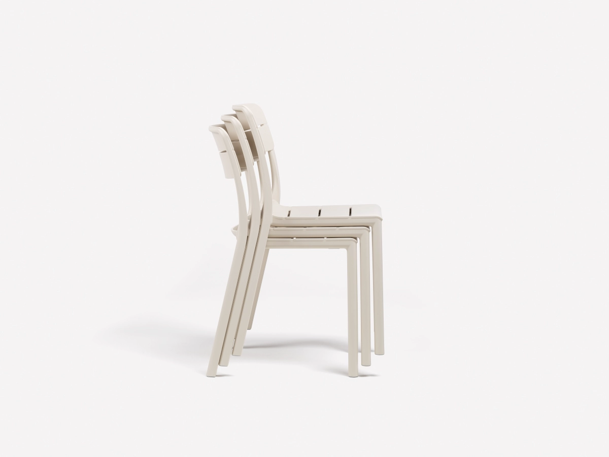 Med de olika matta färgerna som stolen finns i så gör det att stolen är intressant i olika miljöer och oavsett om det är i en inomhusmiljö eller utomhusmiljö. Det är även en luftig stol tack vare sin design och som även gör att det är enkelt att förflytta stolen. Stolen är även praktisk då den är stapelbar vilket underlättar vid förvaring av flera stolar som då även tar mindre plats.