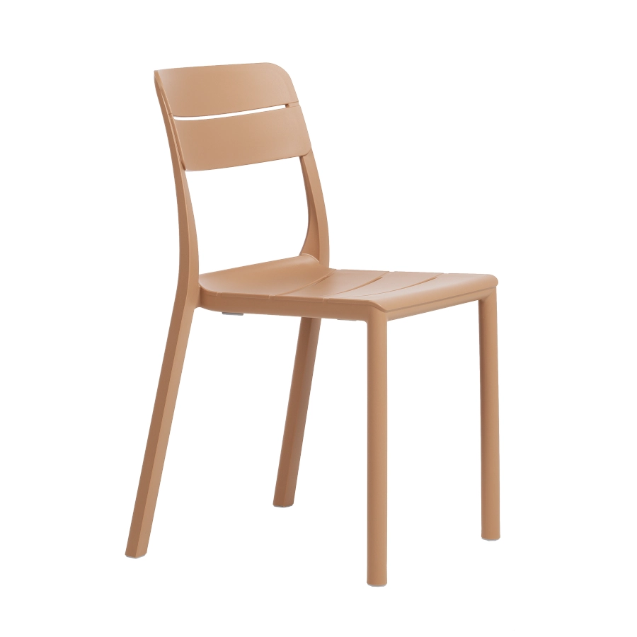 Cassia Bistrot stol som kombinerar horisontala lameller med ergonomisk och komfortabel design som är intressant i olika miljöer.