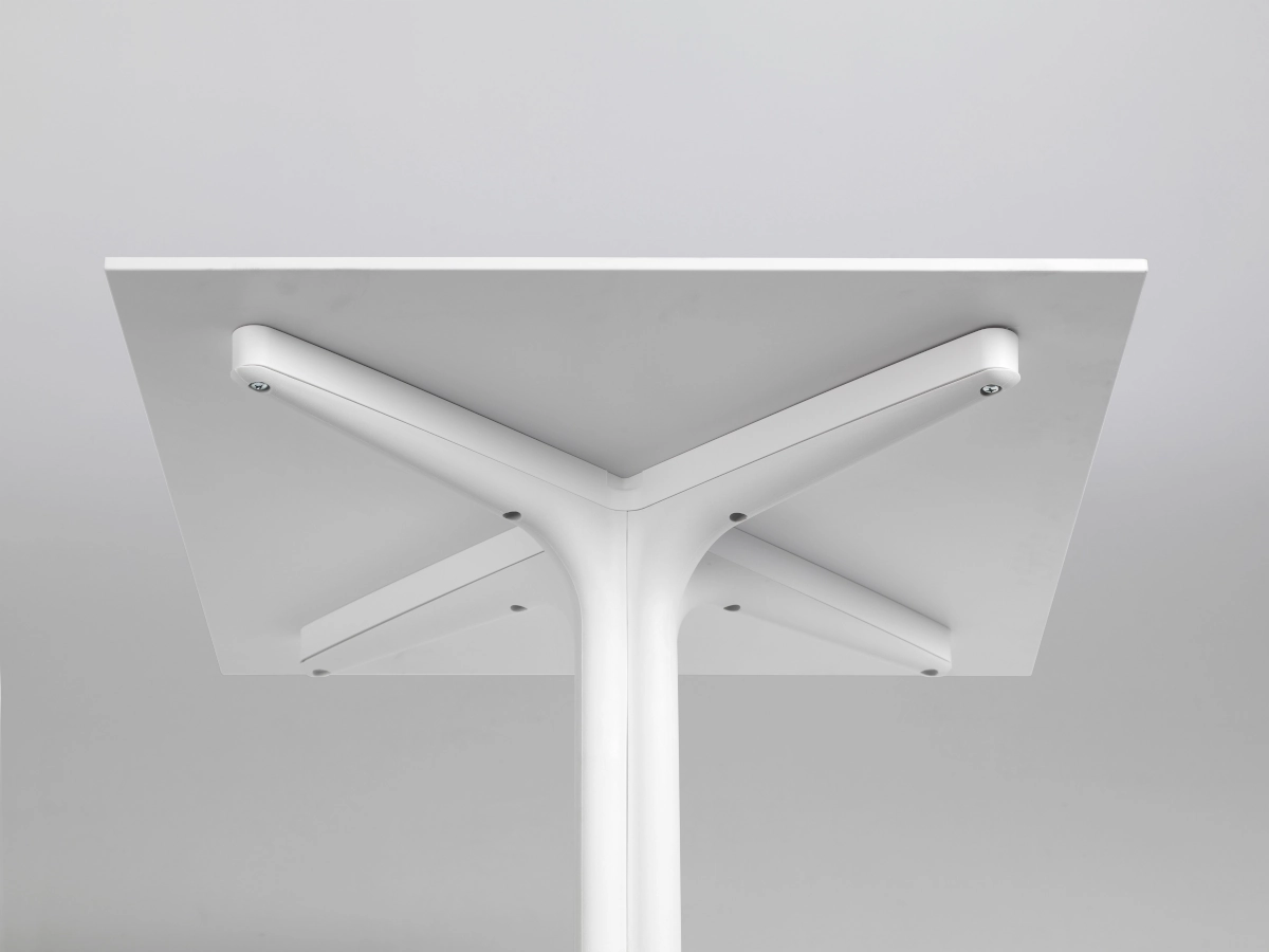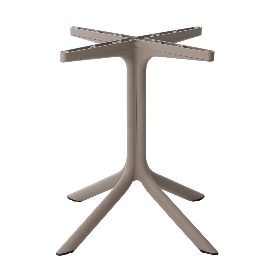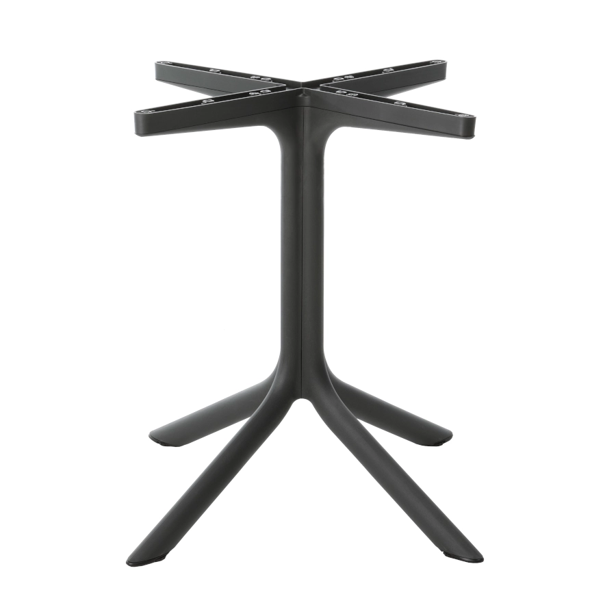 Det här bordsstativet har fyra ben som har justerbara fötter och bordsstativet kan användas till en rund eller fyrkantig bordsskiva. Med bordsstativet ihop med en bordsskiva får man ett bra restaurangbord eller kafébord som passar bra på en uteservering men även ett intressant mindre matbord för balkongen eller uteplatsen.