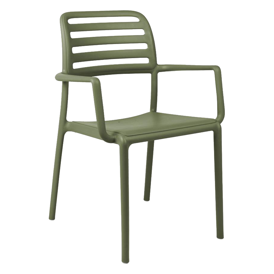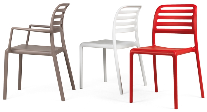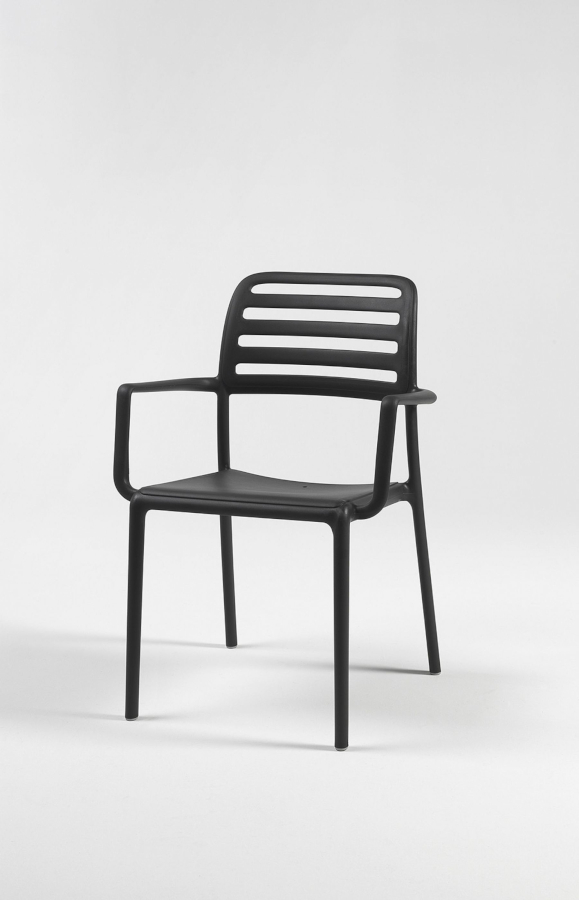 Costa karmstol som är tillverkad av polypropylen och glasfiber där flera olika färger finns. Karmstolen ingår i serien Costa där det även finns en stol. Serien Costa kännetecknas av att ryggen har ribbor vilket gör att serien känns extra luftig. Ribborna i ryggen är även praktiska då man kan använda dem som handtag.