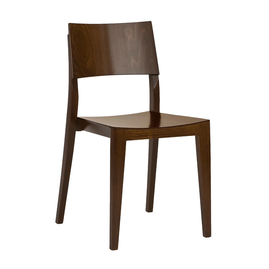 Domo stol som är tillverkad av bok och har en stilren design som passar bra i olika inredningar. Det är även en praktisk stol då stolen är stapelbar vilket underlättar vid förvaring av flera stolar.