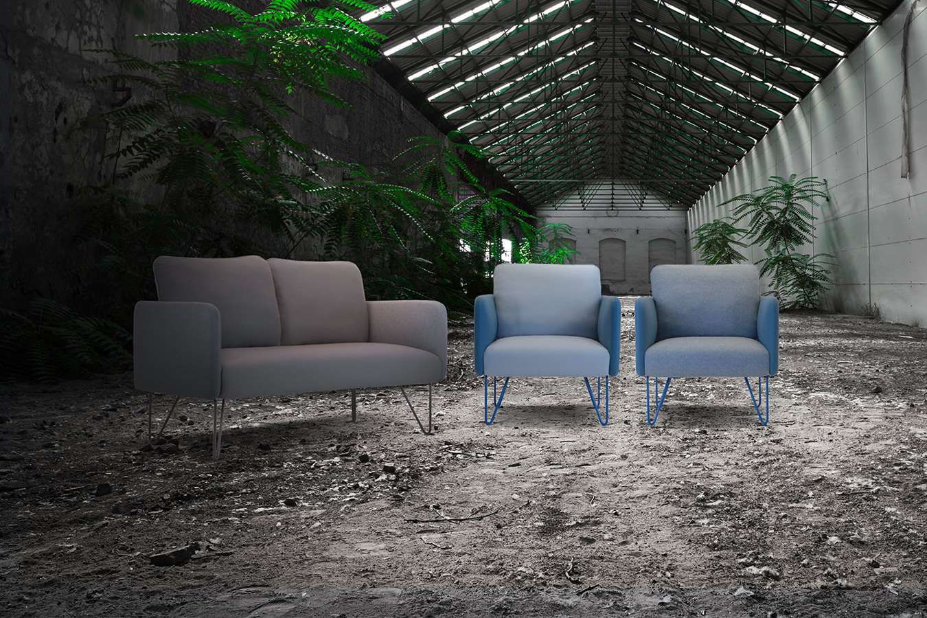 Doumo är en serie som innehåller flera möbler med trådben som ger en intressant design.