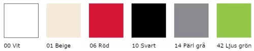 Färgerna vit och svart kan användas utomhus men krom bara inomhus.