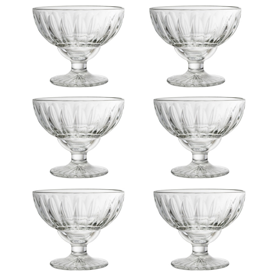 Elise dessertskål av glas på fot som har en klassisk design med mjukt ribbad kant. En vacker skål som är perfekt vid servering av glass men även till många andra desserter.