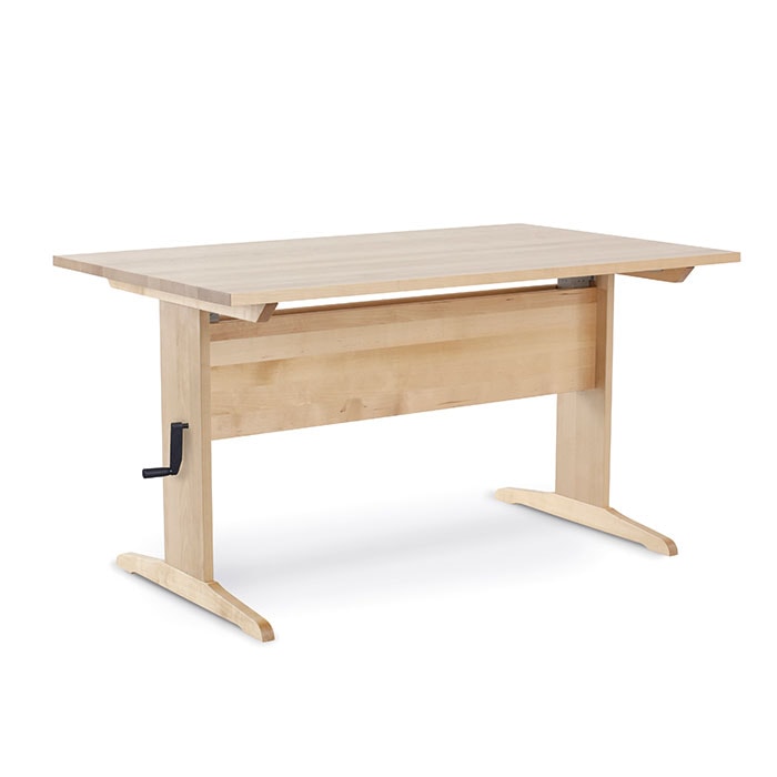 Detta bord är höj och sänkbart med stativ som är tillverkat av massiv björk och bordsskivan är av massiv björk eller högtryckslaminat. Obs björklaminat färgen har ändrats lite i färg from år 2022.