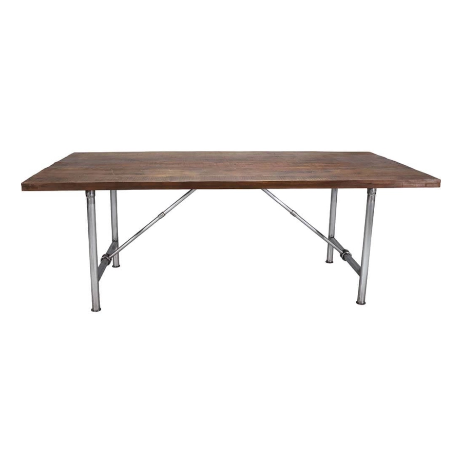 Bordet har en bordsskiva av återvunnet trä som har ojämn yta och det kan finnas repor, märken och sprickor som gör bordsskivan rustik men även ger extra charm till bordet. Bordets bordsstativ är av järnrör där utseendet kan variera. Att bordet är rustikt men även av återvunnet material gör att färg, storlek och finish kan variera som gör varje bord unikt. Bordet ingår även i ett sortiment där slutförsäljning kan ske.