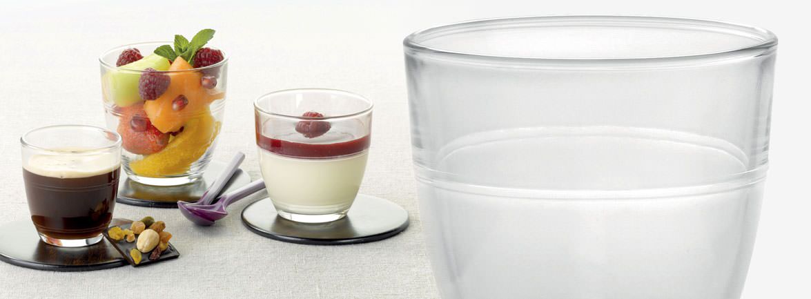 Gigogne tumbler glas som är tillverkad av härdat glas och som rymmer 9 cl.