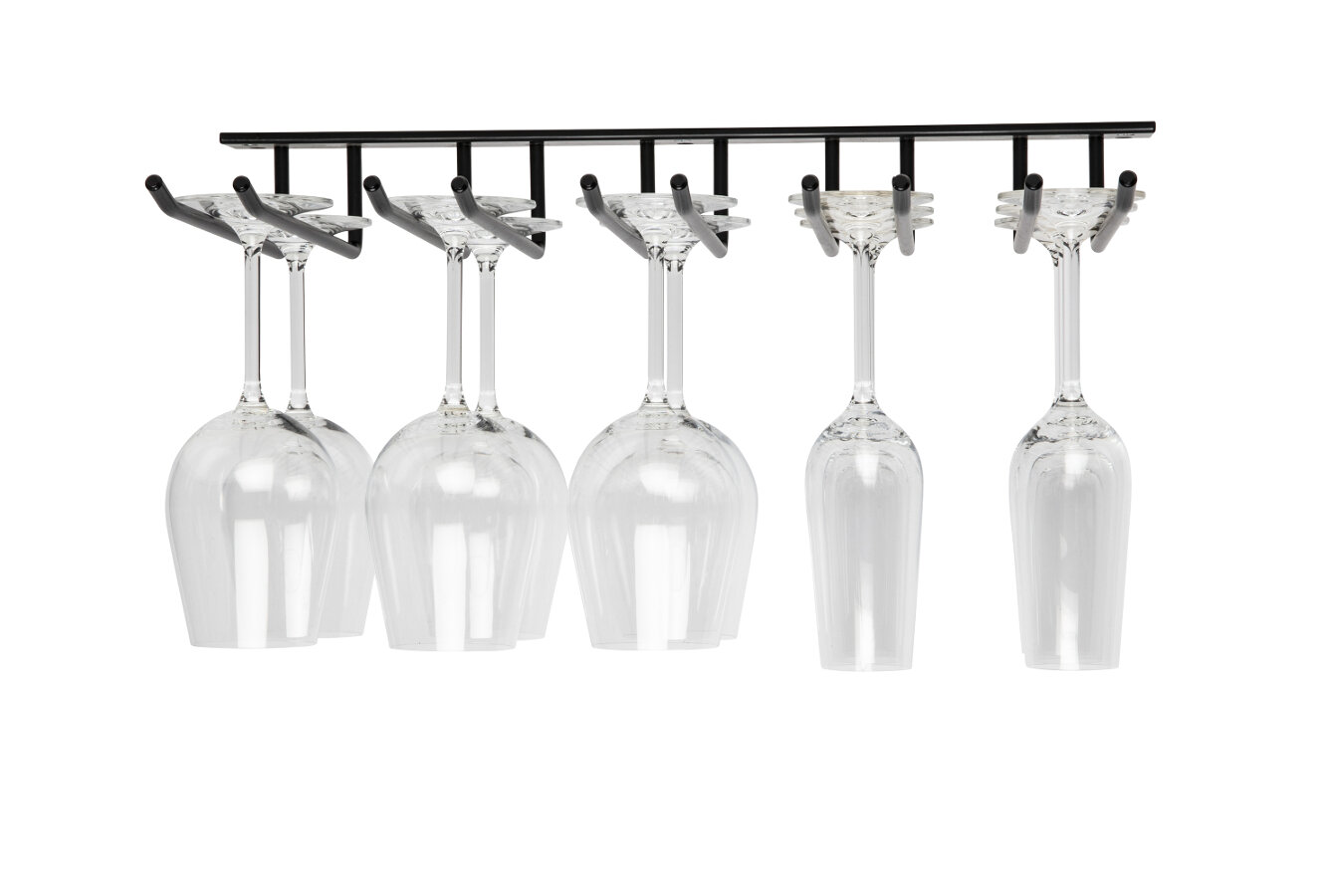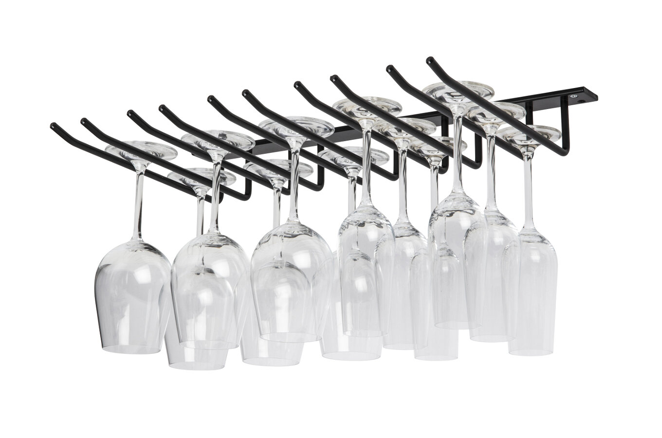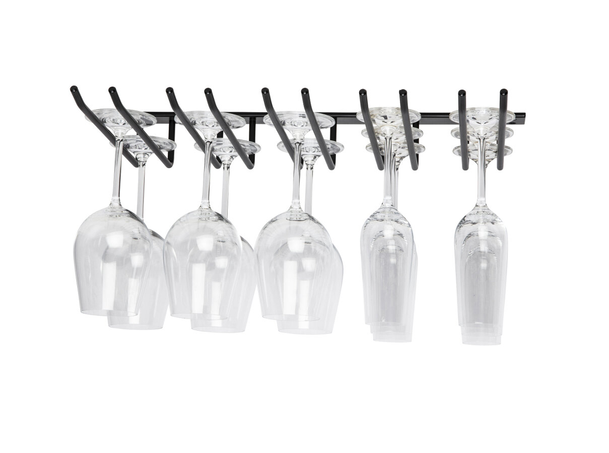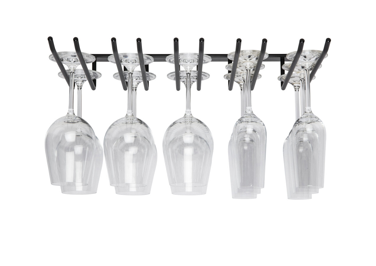 En stilren glashängare och glashållare som passar bra i flera olika restauranginredningar och barinredningar men som även är intressant i ett hem. Det går att montera fast glashängaren både i tak, under ett skåp eller hyllplan.
