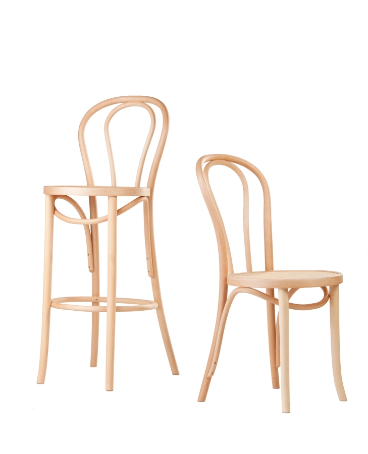 1840 barstol som är tillverkad av bok och har träsits men även finns med olika sitthöjder. Barstolarna ingår i serien 1840 som har välkända former som är tillverkad med böjträteknik. I serien 1840 finns stolar, karmstolar och barstolar i olika utföranden. Barstolen i serien finns med träsits, klädd sits och med rottingsits.