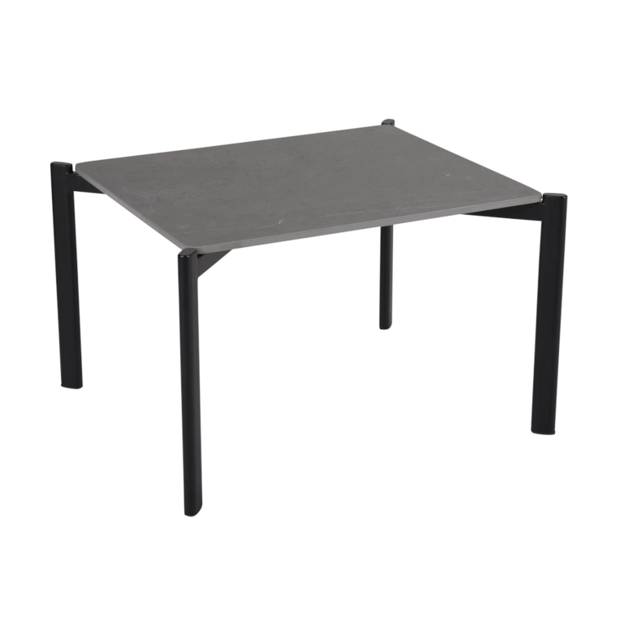 Hallavara soffbord från Brafab som har stilren design med stativ av stål och bordsskiva av kompositsten som passar bra i olika utemiljöer.