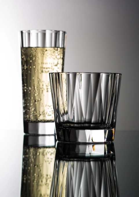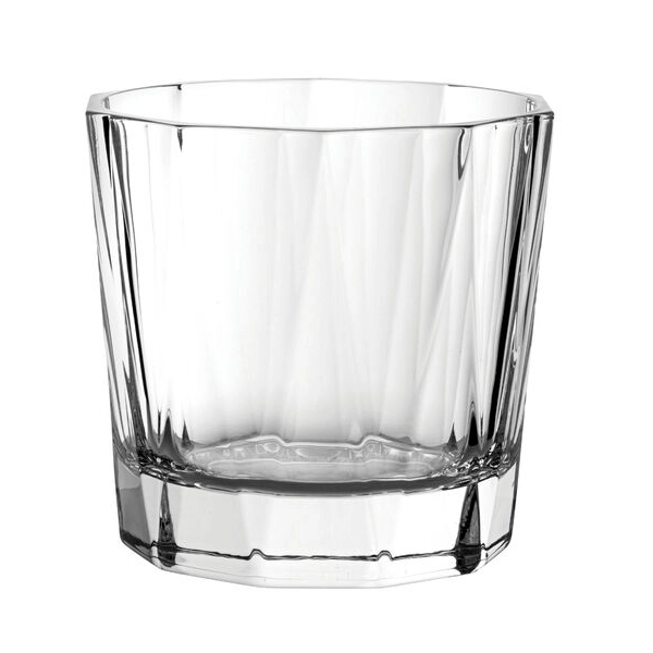 Serien Hemingway känns igen av ett linjärt mönster som ger ett distinkt utseende och samtidigt är tidlös. Det här låga glaset som är ett Double Old Fashioned glas passar bra som whiskyglas men även intressant som ett lågt drinkglas i barer eller i restauranger.