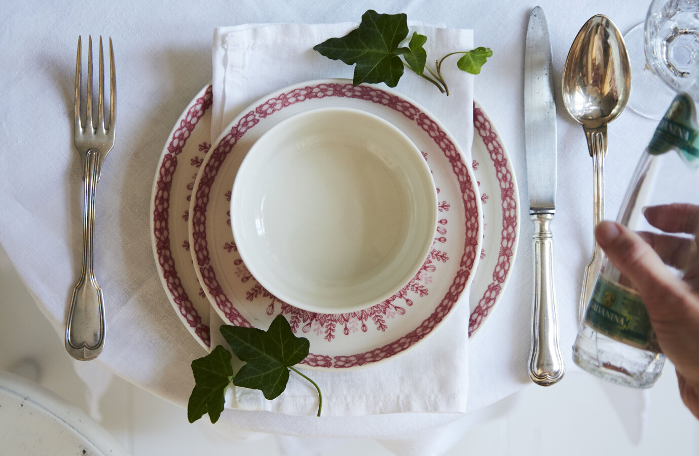 Med Heini Riitahuhta typiska handritningsstil skapas ett modernt och spännande blommigt mönster med vildrosor men även känslan av 1920-talet och gamla Arabia. I serien Huvila finns flera olika delar som kan användas var för sig eller ihop.