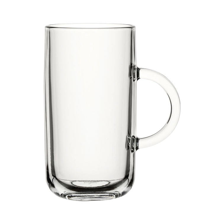 Det här är en mugg med en högre höjd som passar lika bra till varma som kalla drycker. Muggen är även tålig då den är av härdat glas vilket gör att muggen passar bra i kaféer och restauranger men även intressant i andra miljöer också.