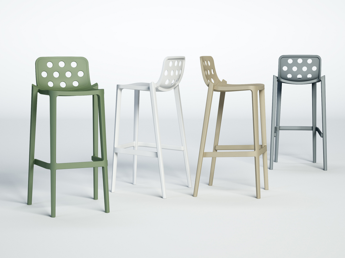Barstolarna i serien kan väljas i flera färger och de finns även i två olika sitthöjder. De är även stapelbara vilket gör dem praktiska vid behov av förvaring då de tar mindre plats och de passar lika bra inomhus som utomhus.