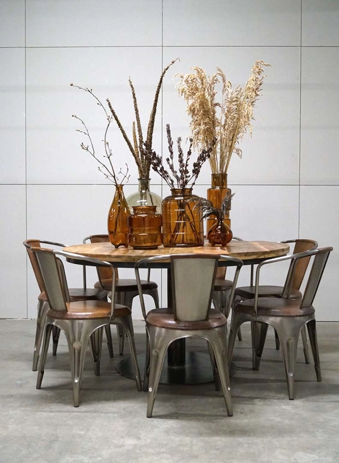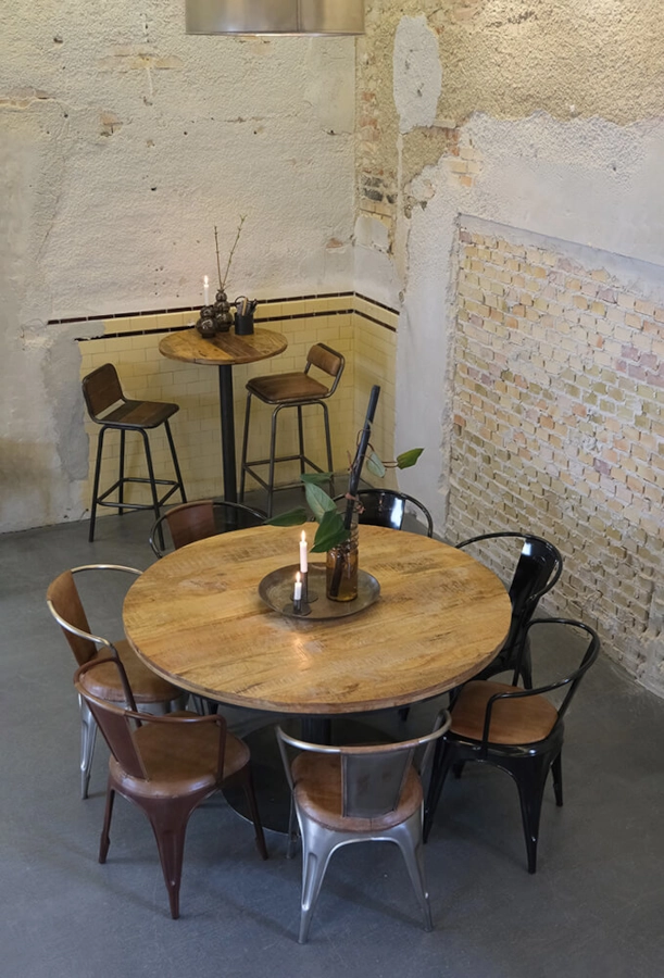 De olika borden har en vacker bordsskiva av mangoträ som inte är helt slät men även kan ha repor eller märken och bordsstativ i klarlackat utseende. Att bordsstativet är klarlackat ihop med bordsskivans naturliga utseendet gör att bordet får ett patinerat men även rustikt utseende vilket ger extra charm.