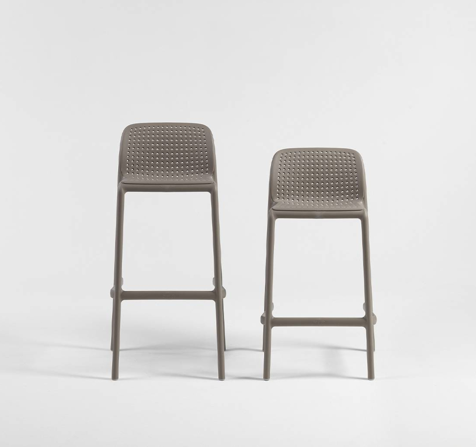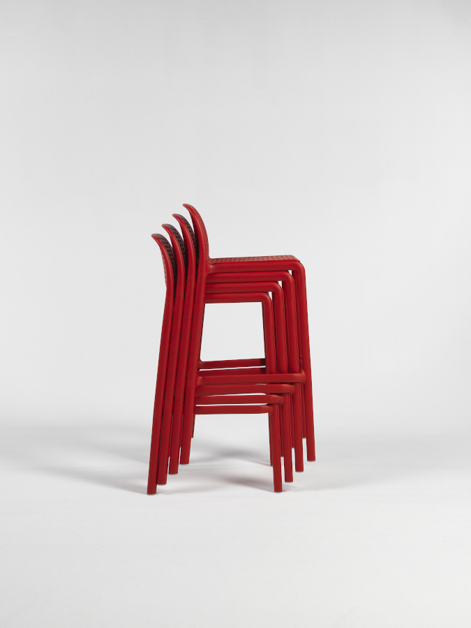 Lido barstol av polypropylen med glasfiber som finns i olika färger och med olika sitthöjder. Barstolarna i serien Lido kännetecknas av sin sits och rygg som är perforerad med hål vilket gör att serien känns extra luftig. Hålen är även praktiska om man har barstolen utomhus när det regnar och som sen torkar snabbare.