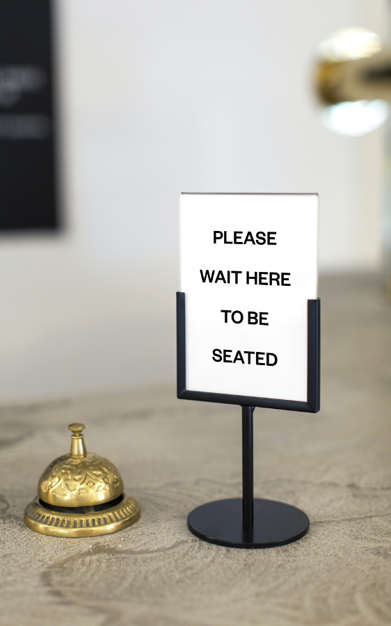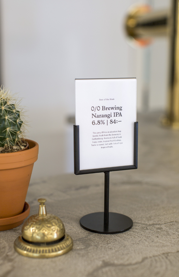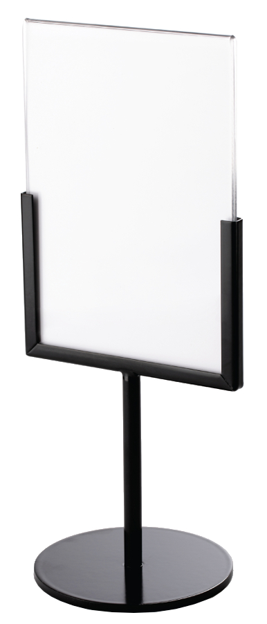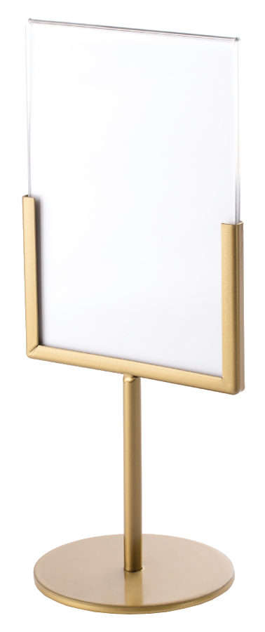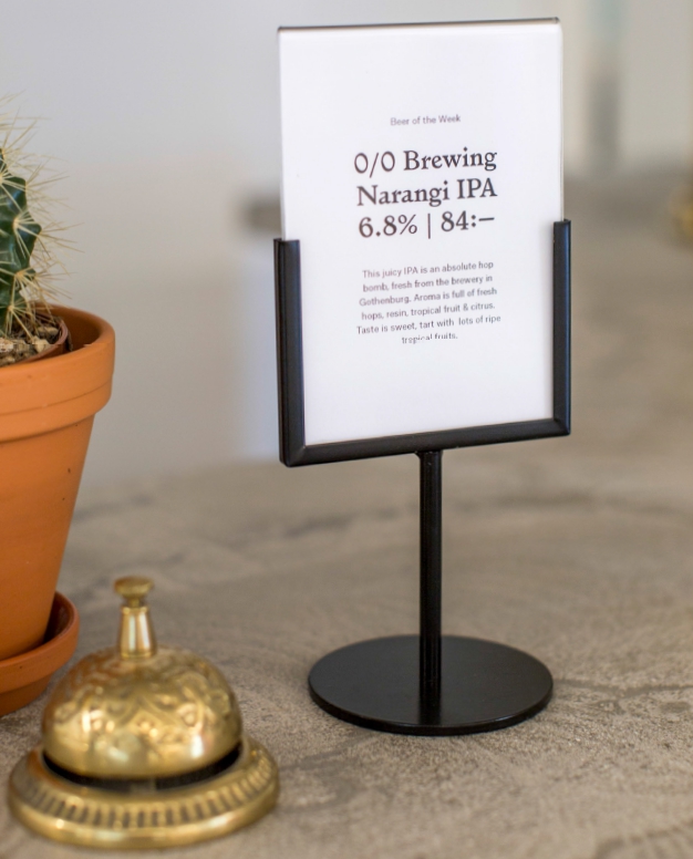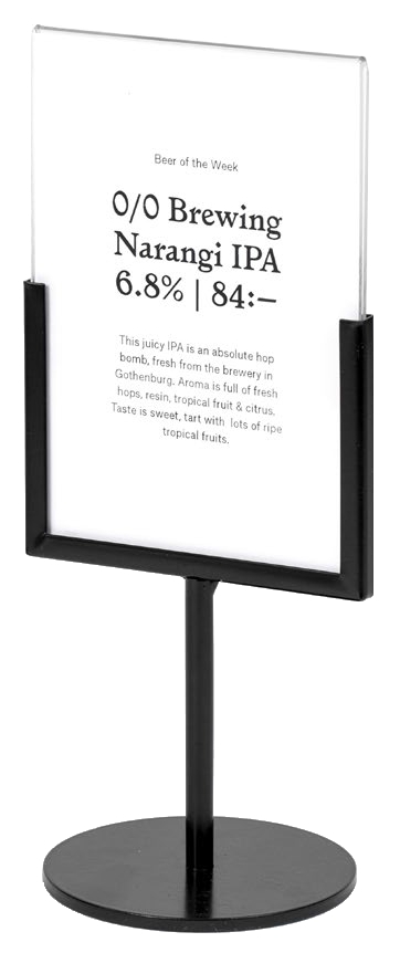 En stilren, mångsidig och funktionell bordsryttare och bordspratare som kan ha ett budskap i  A6 storlek (10,5x14,8 cm).