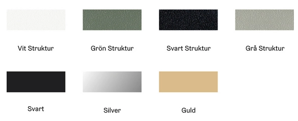 Färg: Vit struktur, grön struktur, svart struktur, grå struktur, svart, silver och guld.