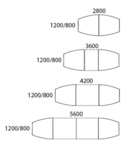 * 560x120/80 cm - 4 delad bordsskiva, 4 t-benstativ