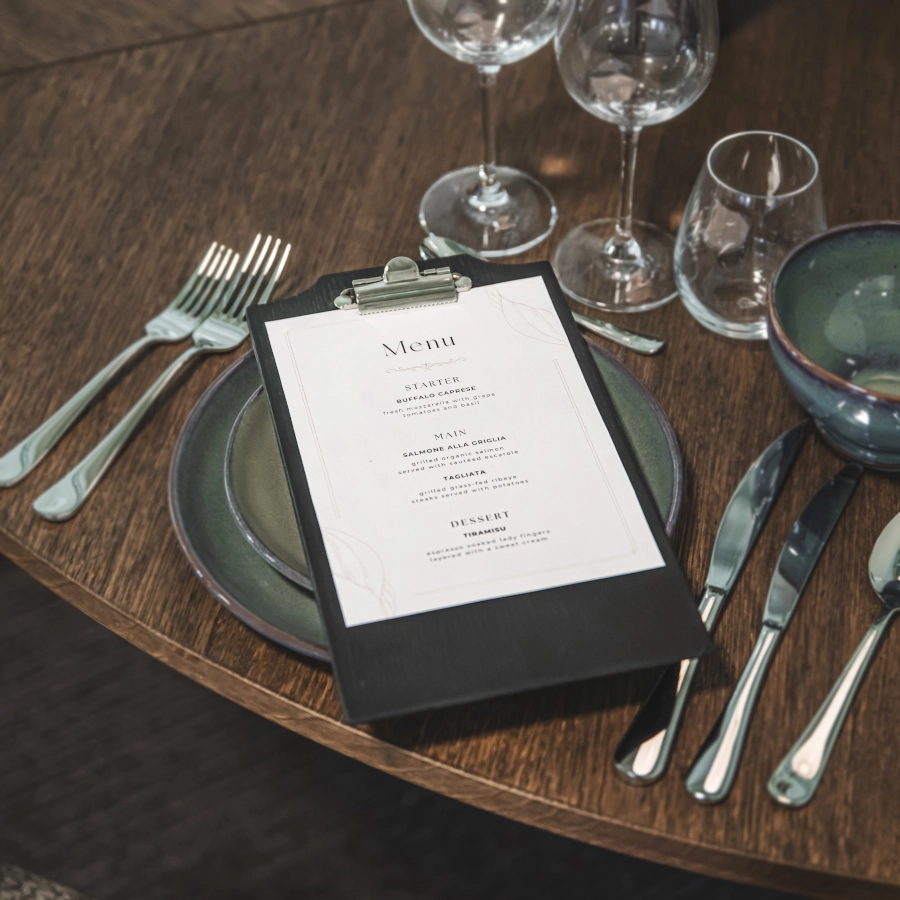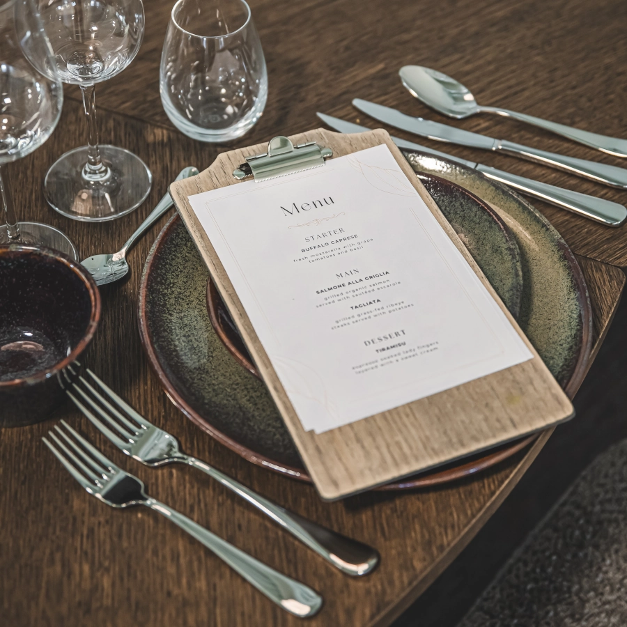 Menybräda med klämma och A5 storlek är perfekt för att presentera menyn för gästen vid bordet och passar bra i olika kaféer eller restauranger.