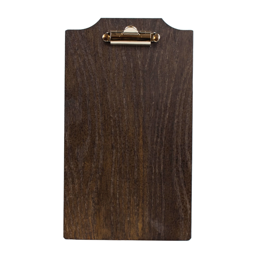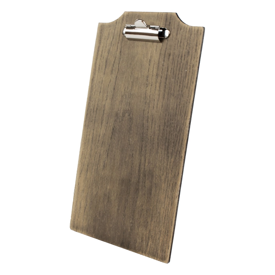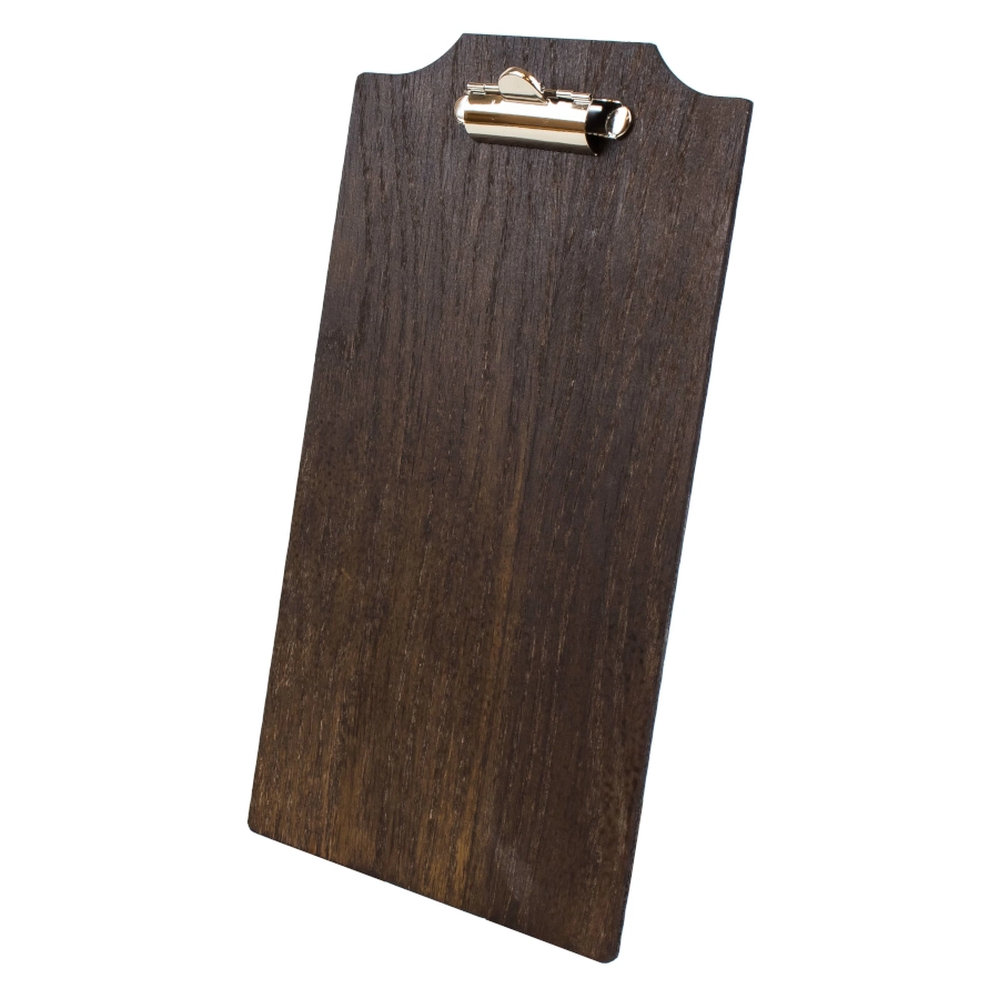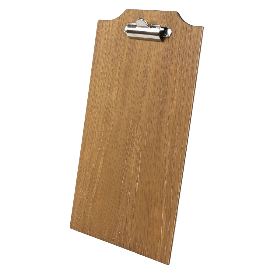 Menybräda med klämma i A5 format där brädan är tillverkad av ekfanér och som finns i olika färger. Menybrädan ingår även i en serie där olika storlekar finns som kan användas ihop eller var för sig. Till den här menybrädan finns tillbehör som en menyhållare.