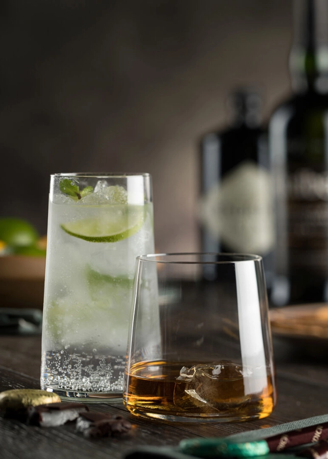 Det här glaset är ett mångsidigt glas som passar bra som whiskyglas, dricksglas och som ett lågt drinkglas men även lika intressant i restauranger, barer som i ett hem.