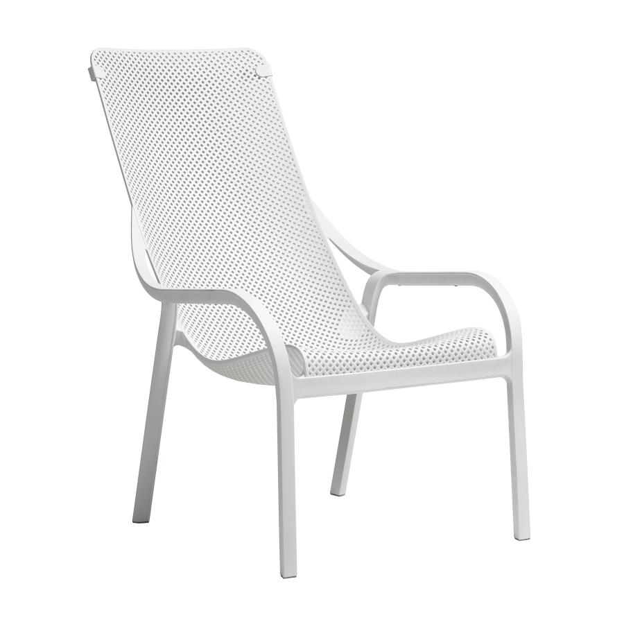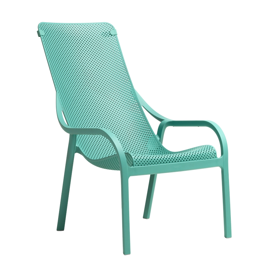 Net Lounge från Nardi har perforerad sittskal och finns i olika färger. En solstol och loungestol som passar vid flera olika utomhusmiljöer.