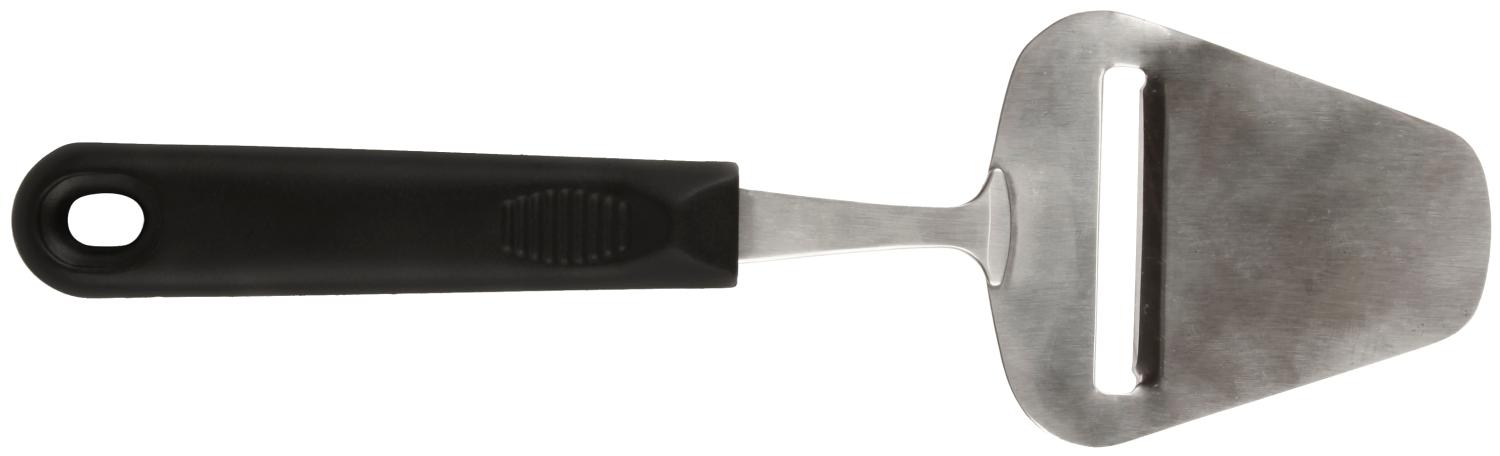 Ostyhyvel i klassisk design som är tillverkad av rostfritt 18/0 med svart plasthandtag och som passar bra i flera olika miljöer.