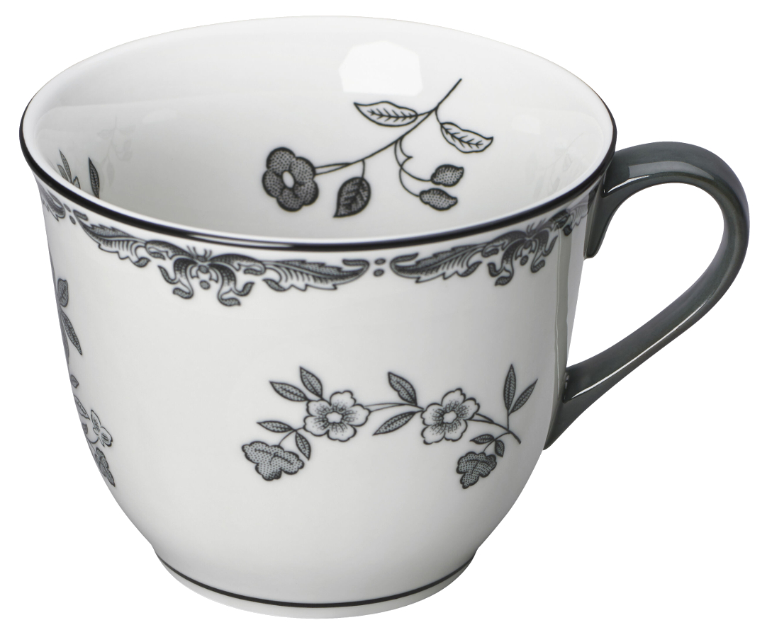 Ostindia Svart mugg med öra som rymmer 40 cl och är tillverkad av fältspatporslin. En mugg som ingår i en klassisk serie där flera delar finns.