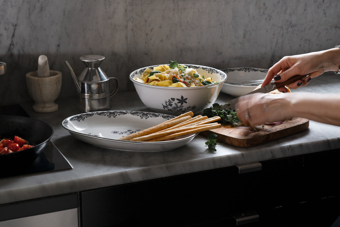 I alla tider har den svarta färgen stått för något elegant, sofistikerat och sensuellt - en känsla av vardagslyx som vi gärna unnar oss. På begäran har Rörstrand tagit fram en efterföljare till blåvita Ostindia, Rörstrands näst äldsta porslin i produktion och en uppburen svensk designklassiker. Ostindia fortsätter, tre generationer senare sin resa genom köks- och dukningstrender.Servisen har aldrig sett yngre ut än nu när Rörstrand ger fältspatporslinet den eleganta svarta färgen.