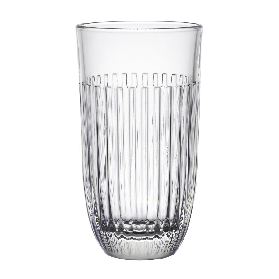 Ouessant tumbler glas med elegant ribbad design. Glas ingår i serien Ouessant som är en modern version av en älskad fransk design och är inspirerad av bretonska kanoter där Ouessant uttrycker havets hårda vågor. Det finns ett lyster som kommer fram tack vare de ribbade linjerna längs med glasen.